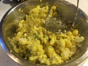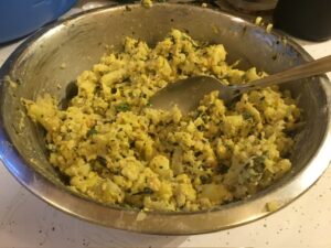 • Mix the cauliflower into the rest of the ingredients.