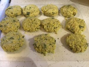 • Form the dough into small patties; about 1/4 cup per patty.