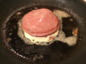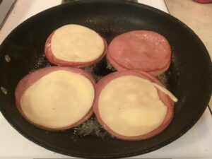 - Flip each stack. Add a slice of provolone to 3 of the stacks. Cook for 3 minutes.