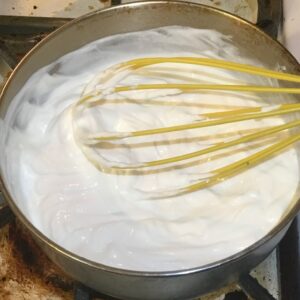 - Whisk in the hot milk.