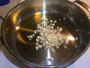- Heat up olive oil in a large saucepan over medium heat. Sauté the garlic for 1 minute.