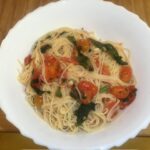 Capellini pomodoro is a dish combining capellini pasta with a simple tomato sauce (pomodoro). The origin is Italian, with the pasta shape believed to have originated in northern Italy during the Renaissance and the tomato sauce evolving from a historical dish, with the combination of both becoming iconic. This pasta takes under 10 minutes to make, with the addition of lemon juice bringing a freshness to this dish.