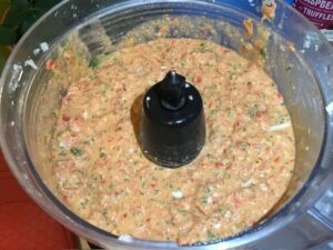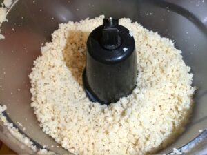 - Place the almonds and salt in the foods processor and chop as fine as possible. Add in the cheese and pulse.