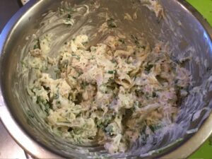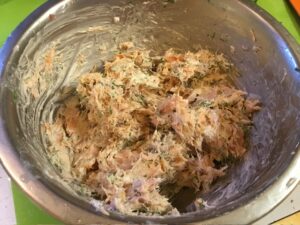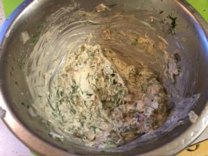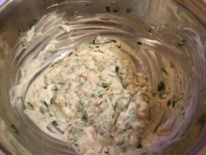 • Mix together the cream cheese, shallots, dill, dijon, and pepper.