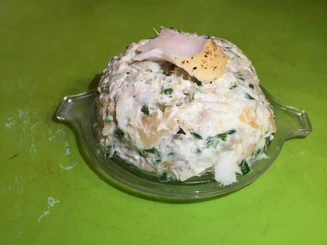 Rillettes are apart of French charcuterie; pork, duck, or fish cooked in its own fat, pressed in a jar or ramekin, used as a spread for crackers, breads, or toast. They’re kinda like a cross between confit and a pate. Since the fish rillettes aren’t cooked in its own fat, a dairy-based fat is stirred in; that fat being crème fraiche, mayo, cream cheese, or sour cream. In these two particular cases, I’ve used smoked salmon and cream cheese with dill, shallots, and dijon; smoked sable and crème fraiche with chives, shallots, and pine nuts.