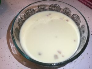 • Mix together the pickle brine and 1 1/2 cups of buttermilk.