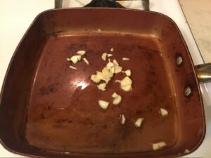 - Over medium heat, add the olive oil to a sauté pan and sauté the garlic for 1 minute.
