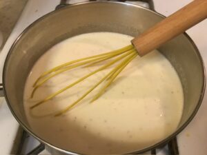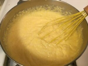 - Once the polenta has thickened, turn off the heat and whisk in the butter.