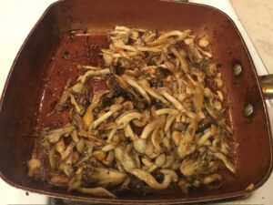 - While the mushrooms are cooking, add the water, salt, and polenta in a pot over medium heat. Consistently stir with a whisk for about 5 minutes.