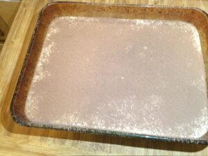 • Pour over half of the mascarpone batter. Place another layer of the soaked ladyfingers.